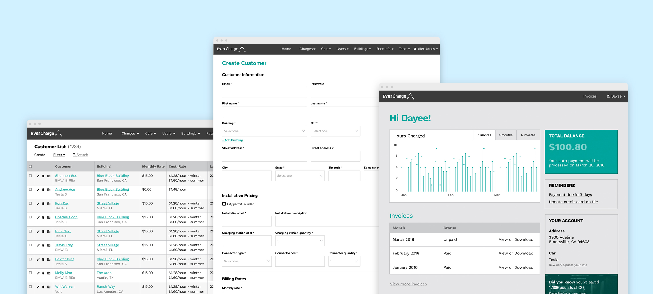 EverCharge is an electric vehicle charging solution for apartments, condominiums, and fleets. I built out internal and customer-facing Dashboards, improved the customer experience, and strengthened the company’s brand.